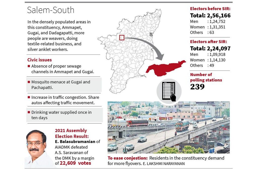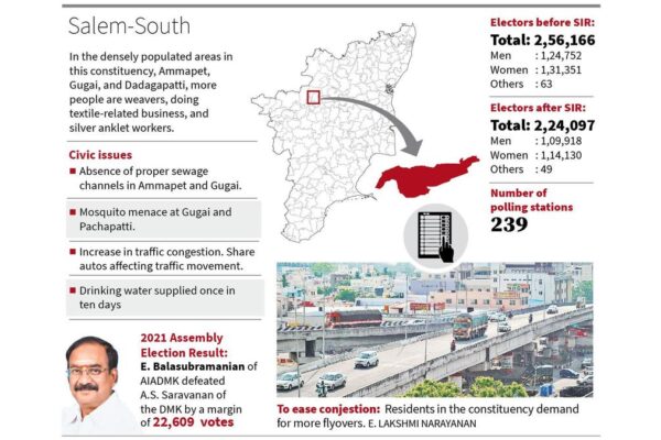 Salem South Assembly constituency, considered an AIADMK stronghold, covers Salem Corporation’s 23 wards (37 to 60). The entire Kondalampatti zone…