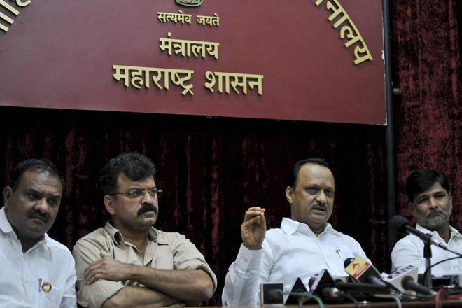 Ajit Pawar (second from right) announced his resignation as the Deputy Chief Minister of Maharashtra in Mumbai in 2012, following allegations of misappropriation of funds. He was reinstated eventually.