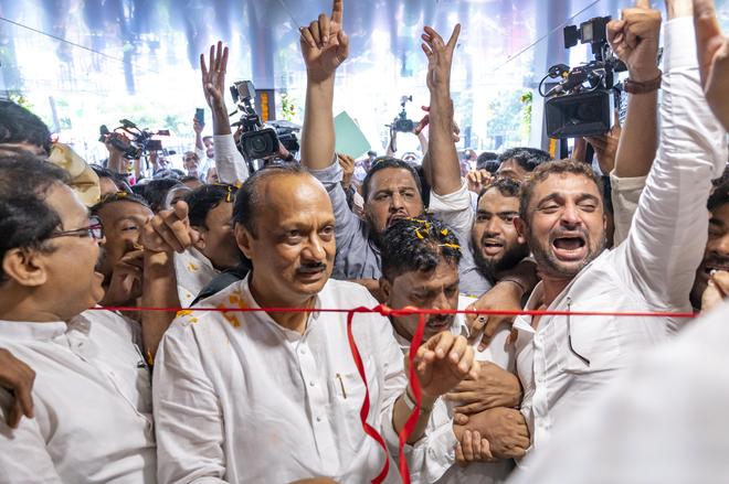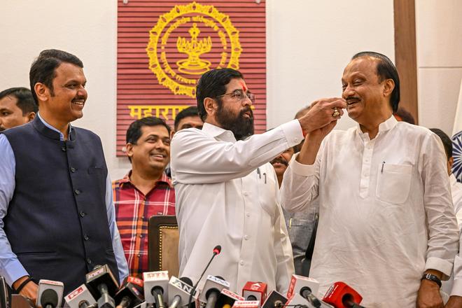 In 2023, Ajit Pawar initiated a split within the NCP, aligning with the BJP-Eknath Shinde faction of Shiv Sena coalition. During this period, Eknath Shinde served as Maharashtra Chief Minister, with Devendra Fadnavis and Ajit Pawar as State Deputy Chief Ministers from 2023 to 2024.