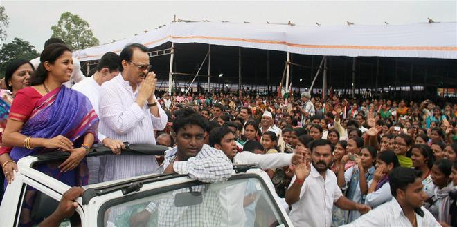 Ajit Pawar at a rally after filing nomination at Baramati in 2019. He has been representing the Assembly constituency for a record eight times since 1991.