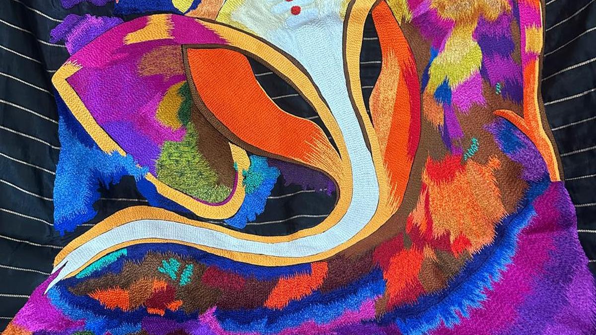 Sari designed by Shirin Nijhawan’s titled Ganesha, is resplendent in a riot of colours, enhanced by embroidery by artist Prabha Narasimhan.