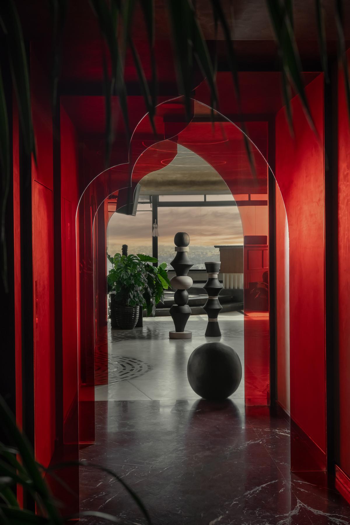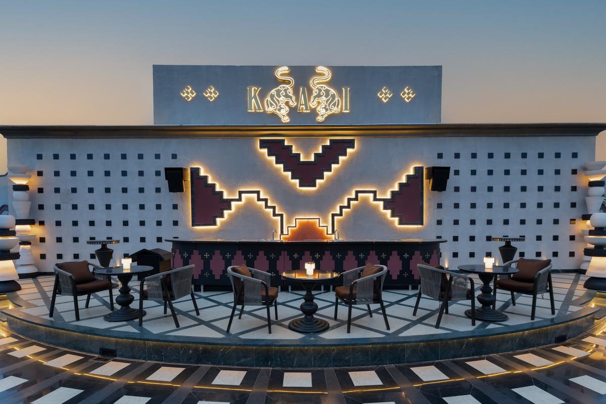 Kai, an 8,000-sq.ft. rooftop bar, is located 13 floors above Bengaluru’s MG Road. The core concept revolves around reinterpreting the grandeur of Indian palaces into a contemporary setting. Instead of relying on ornamentation, the design distils royal architecture into proportion, symmetry, spatial hierarchy, and material richness, creating a modern-day “durbar” experience.