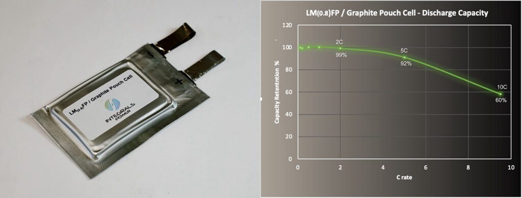 Integrals Power’s LMFP uses 80% manganese content to deliver 20% higher energy density than conventional LFP while retaining LFP’s safety profile, cycle life and cost structure. Unlike NMC chemistries, it contains no cobalt or nickel. Independent cycle life testing by QinetiQ has exceeded 1,500 charge-discharge cycles at 1C rate with nearly 80% capacity retention. Cold temperature testing by Cranfield University showed 85% retained capacity at -25 °C and 68% at -30 °C, results the company says significantly outperform current LFP and LMFP benchmarks.