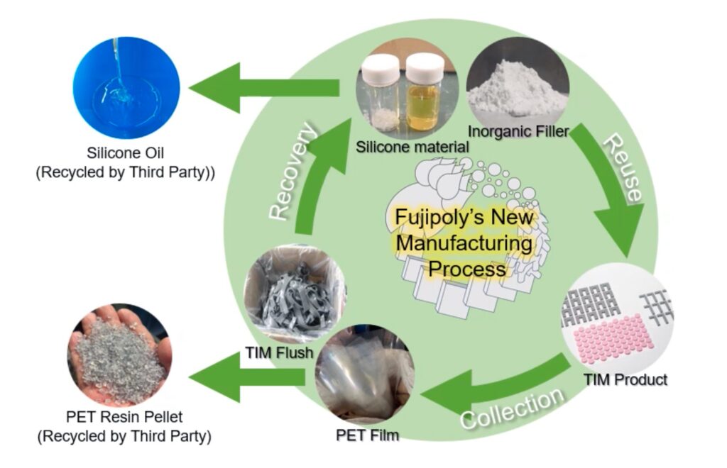 As a leading manufacturer of silicone-based thermal interface sheets, Fujipoly works to minimize scrap at the customer level. Yet, production processes inevitably generate auxiliary material waste and product offcuts. Recognizing this challenge, Fujipoly has launched new initiatives to explore ways of reusing these byproducts, with the goal of closing the loop and advancing circular manufacturing practices.