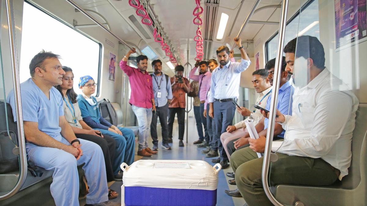 The organs had arrived from Madurai by air ambulance at Chennai airport, according to a press release from Chennai Metro Rail Limited (CMRL).