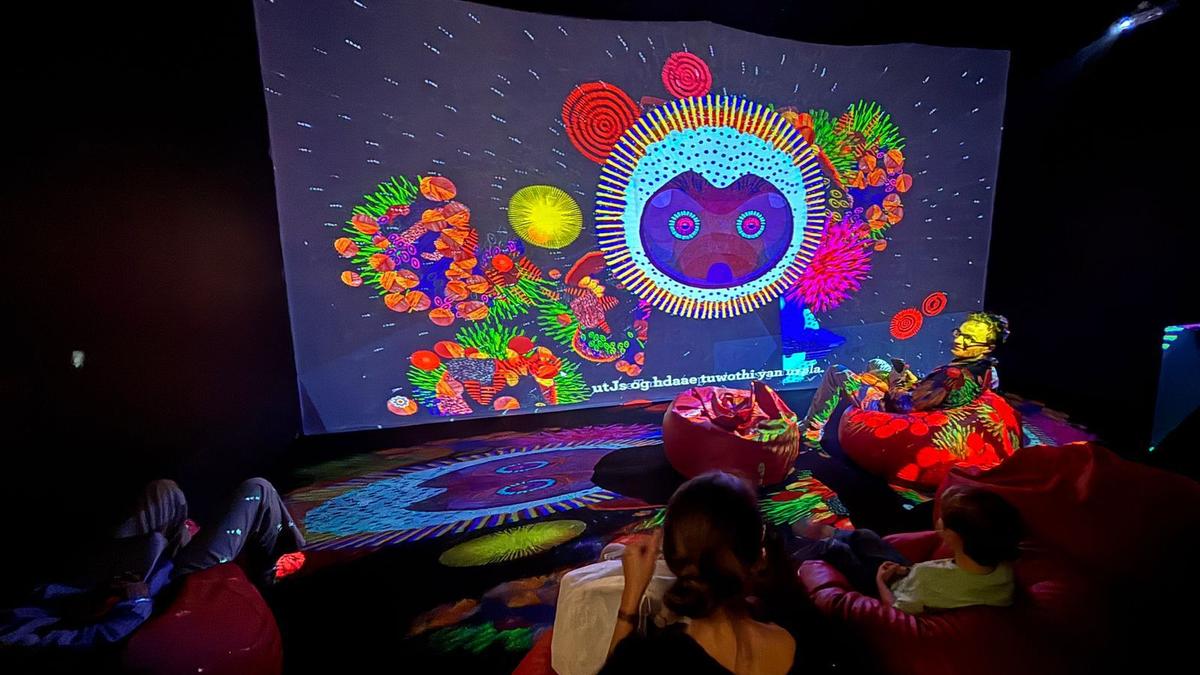 Fortune Teller by Julie Stephen Chheng at Alliance Française Madras is an interactive projection that places the viewer face-to-face with Nature spirits