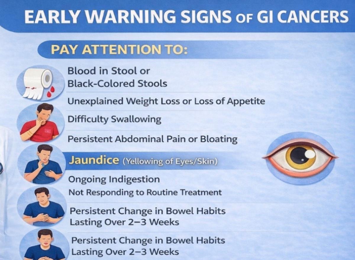 The encouraging reality is that many gastrointestinal cancers are preventable and, when detected early, treatable. Advances in endoscopy, imaging, and multidisciplinary care have significantly improved outcomes. However, these benefits depend entirely on timely diagnosis and early intervention.