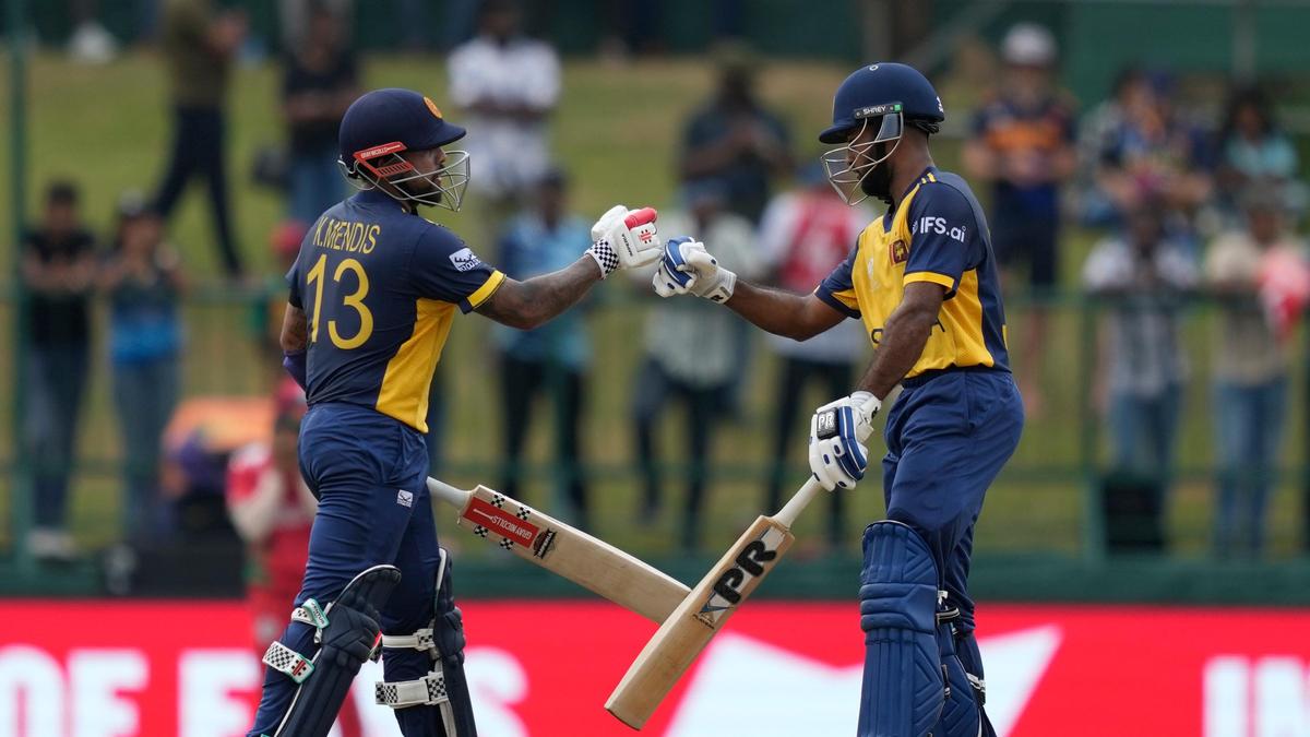 Sri Lanka innings: Pathum Nissanka lbw Mehmood 13 Kamil Mishara lbw Odedra 8 Kusal Mendis (run out) 61 Pavan Ratnayake b Jiten 60 Dasun Shanaka c Nadeem b Jiten 50 Kamindu Mendis (not out) 19 Dunith Wellalage (not out) 6 Extras (LB-4, NB-2, W-2) 8