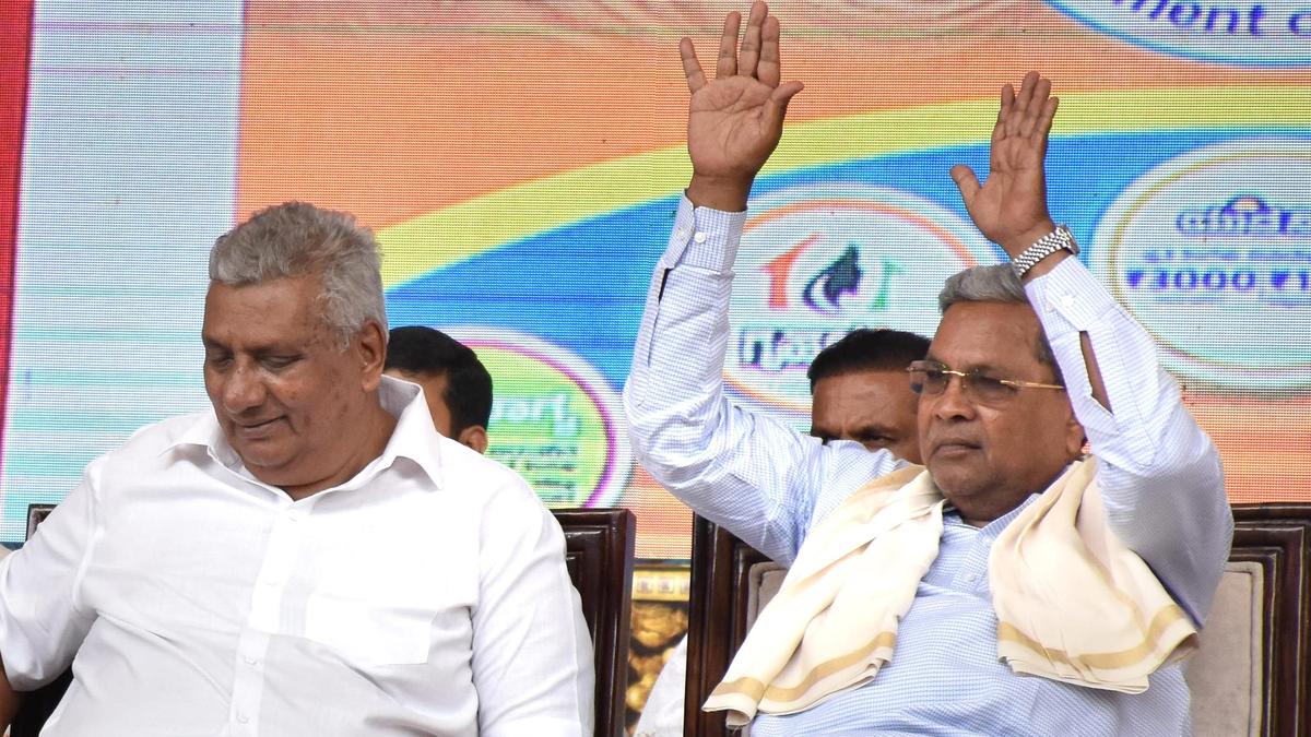 A file photo of Karnataka’s Minister for Animal Husbandry and Sericulture K. Venkatesh with Chief Minister Siddaramaiah.