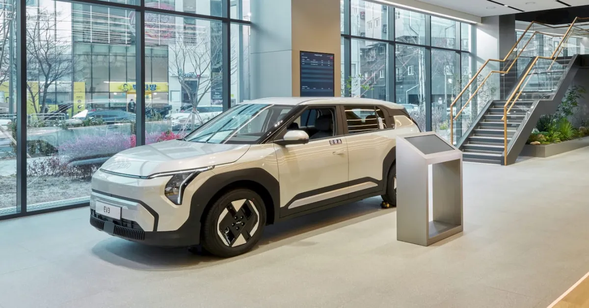 Kia added EV-specific features throughout the store to promote its new lineup, including the EV3, EV5, EV9, and PV5, its first electric van. The site also offers EV maintenance, including a specialized battery workshop and a waste battery storage facility.