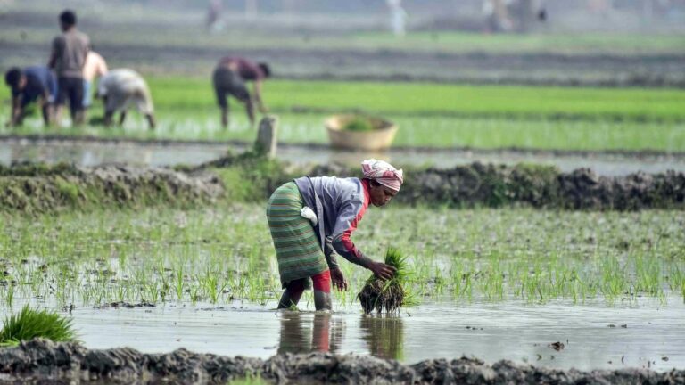 A woman plants rice saplings in a paddy field in Nagaon on February 1, 2026. | Photo Credit: ANI The…