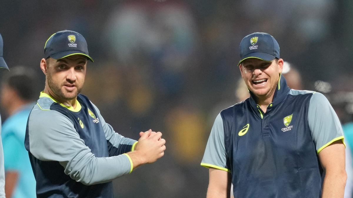 Australians Steve Smith and Josh Inglis are seen during a practice session ahead of their crucial encounter against Sri Lanka in Pallekele.
