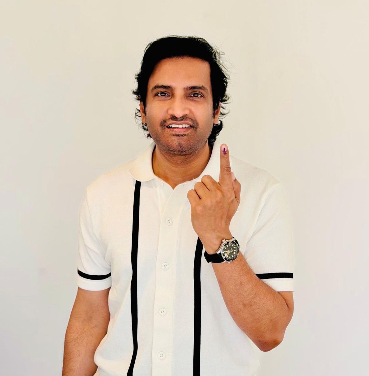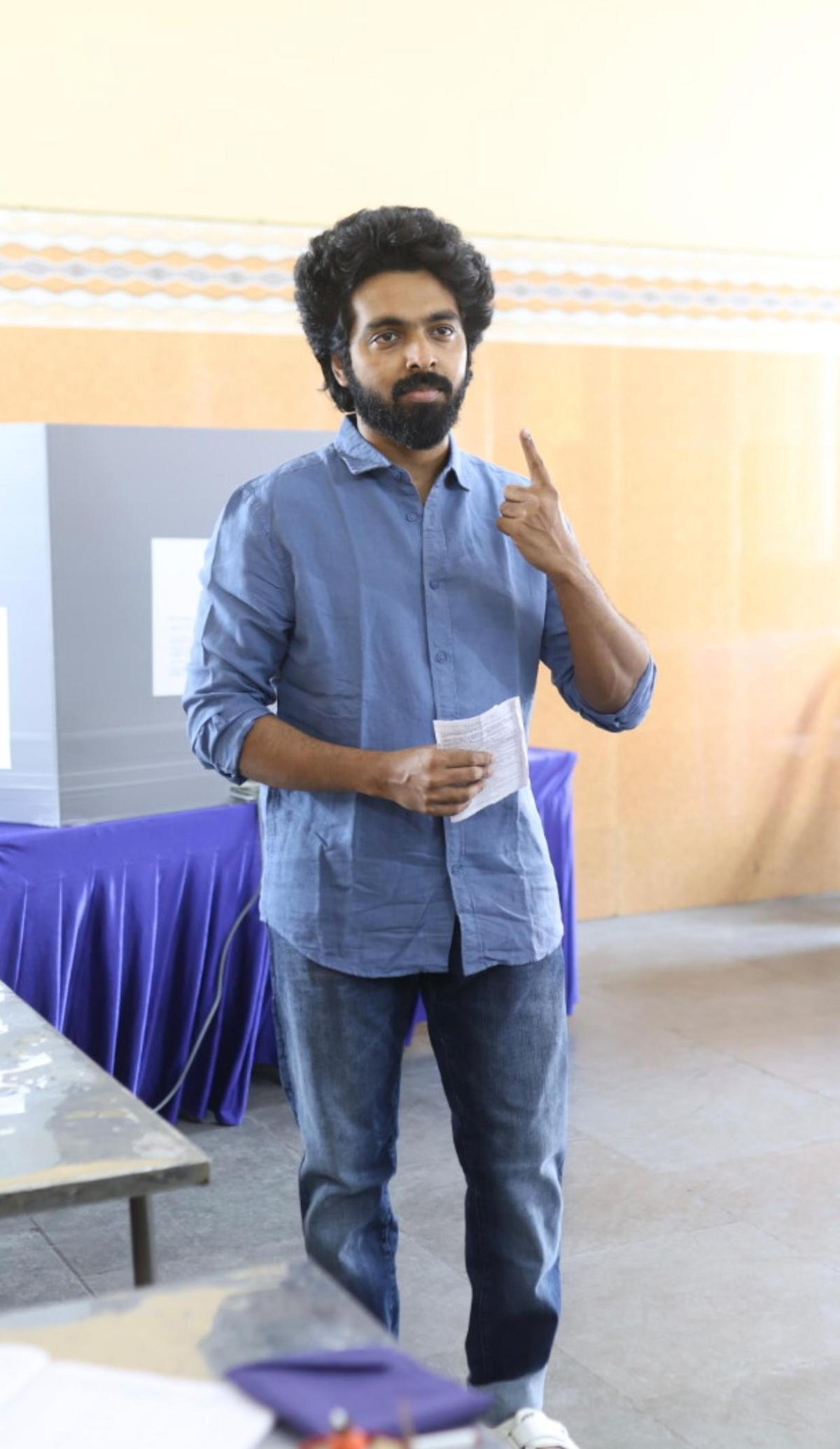 Actor Gautham Karthik cast his vote at a polling booth in Chennai on April 23, 2026