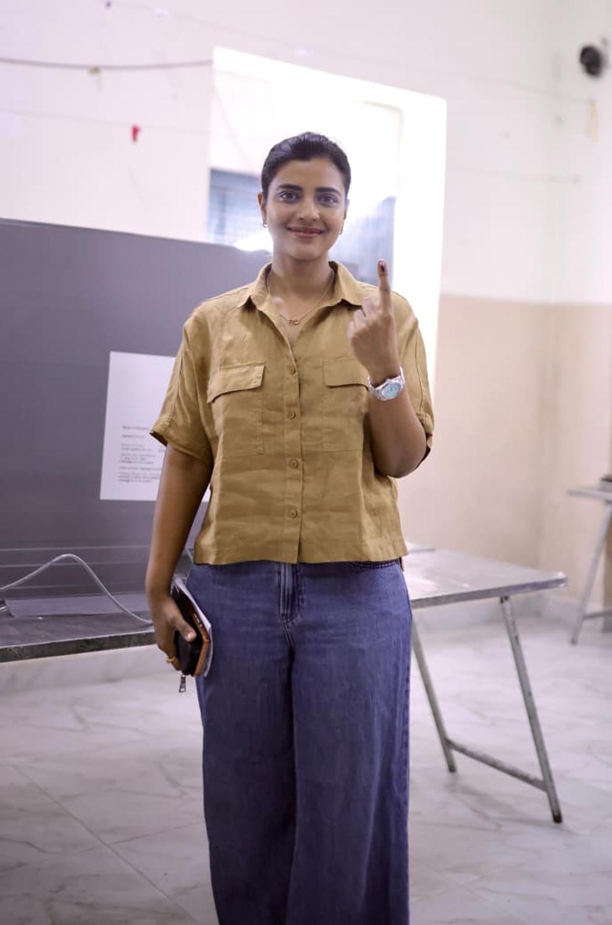 Actor Aishwarya Rajesh cast her vote at a polling booth in T Nagar in Chennai on April 23, 2026