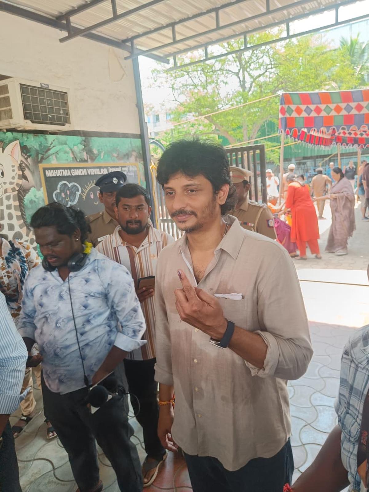 Actor Jiiva cast his vote at a polling booth in Chennai on April 23, 2026