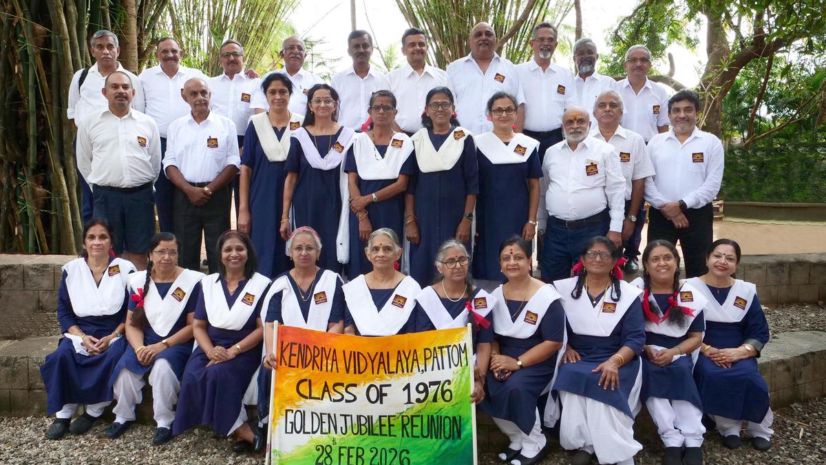 Thirty students of 1976 batch of Kendriya Vidyalaya, Pattom, in Thiruvananthapuram, celebrated the golden jubilee of their passing out with the school assembly where they turned up in their school uniforms