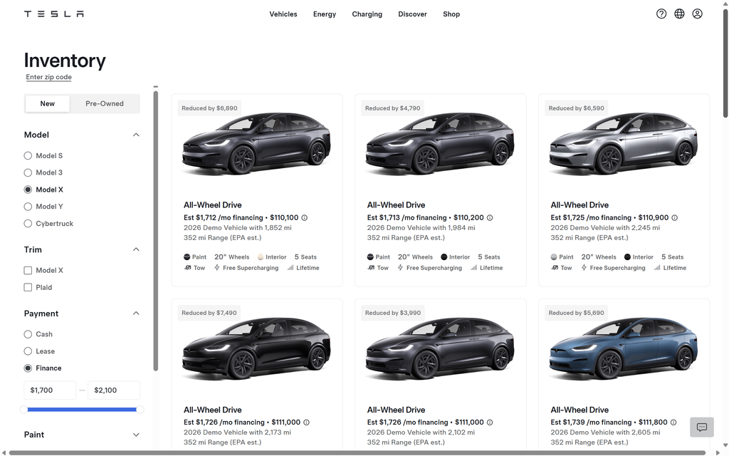 Inventory Tesla Model X EVs